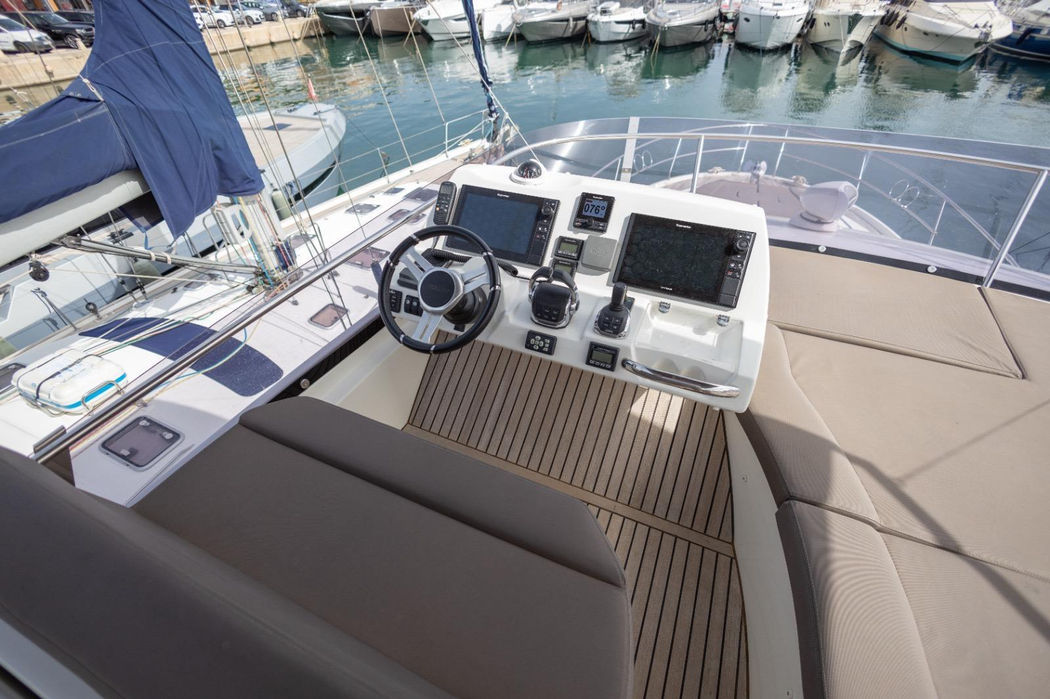 The Prestige 500, refitted in 2021, offers modern luxury with enhanced stability and comfort. With a sleek flybridge, inviting deck spaces, and a bright salon, it provides the perfect setting for both relaxation and entertaining. Powered by twin 600 HP engines, it delivers smooth performance and sophistication for unforgettable journeys across the French Riviera.